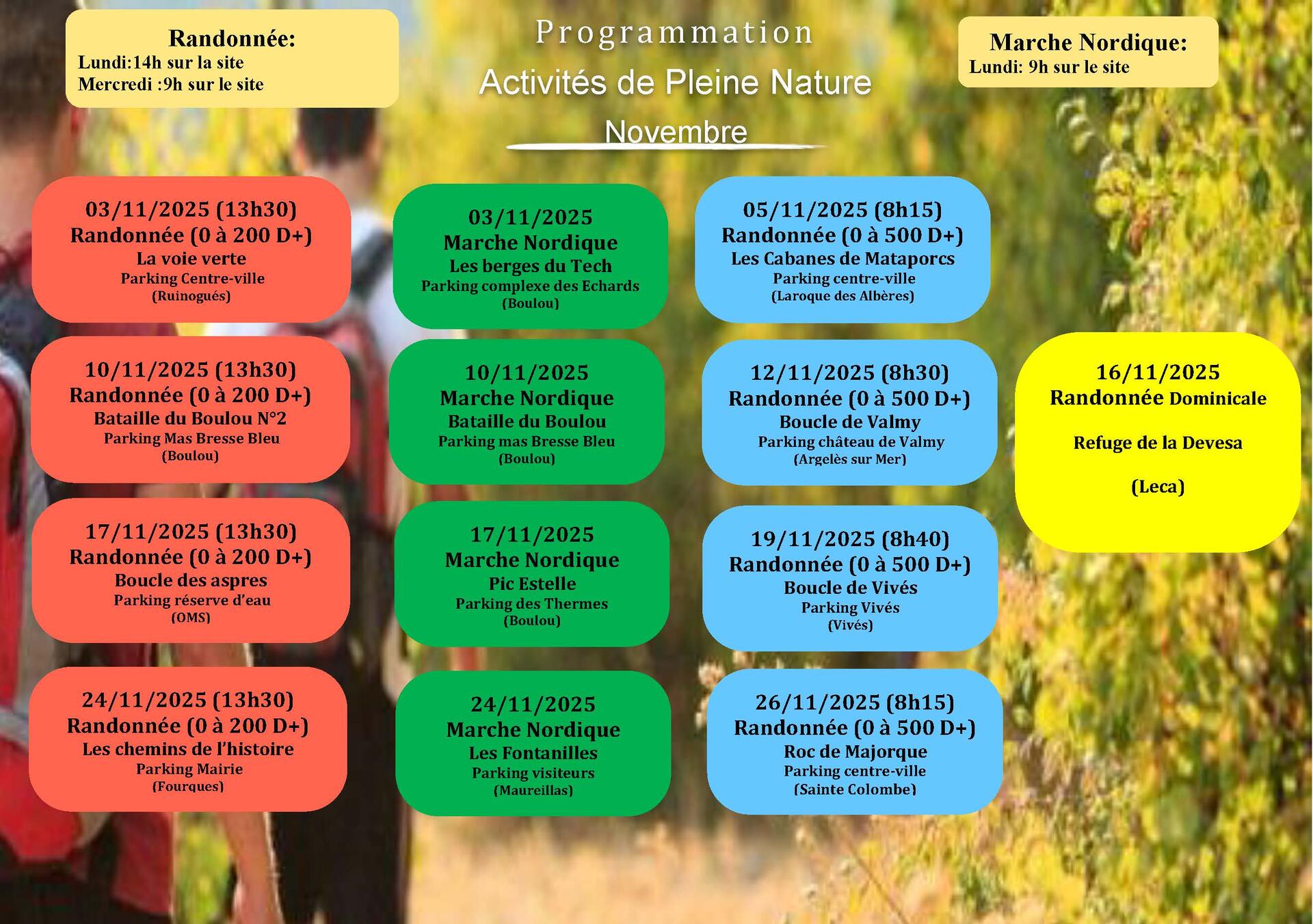 - Activités de pleine nature pour adultes (Randonnée et marche nordique)