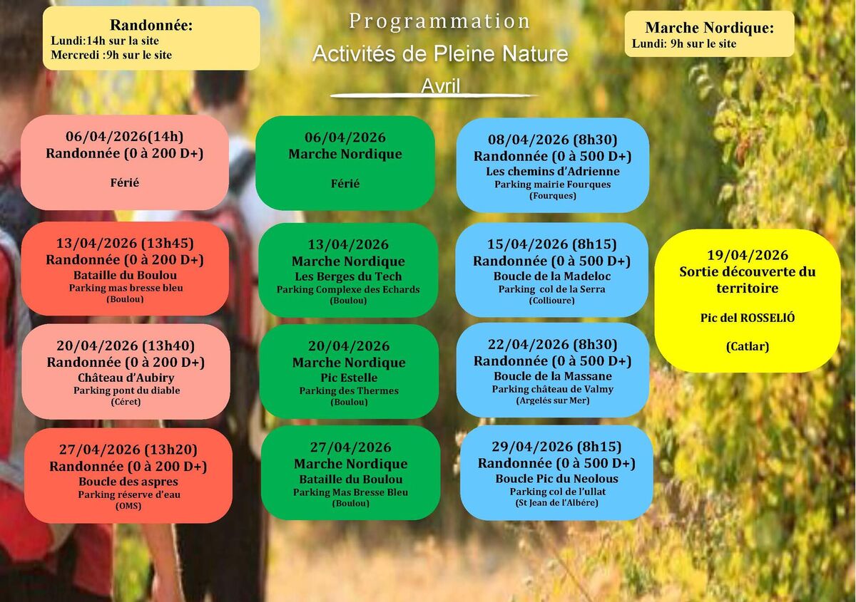 Programmation avril - Activités de pleine nature
