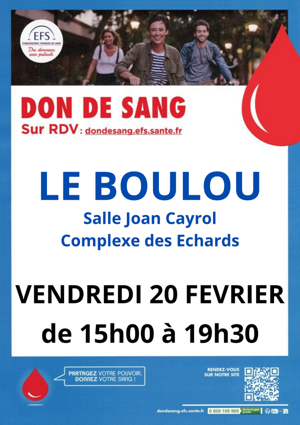 Les donneurs peuvent prendre RDV jusqu’à la fin de la collecte ici : https://dondesang.efs.sante.fr/trouver-une-collecte/152538/sang/16-02-2026