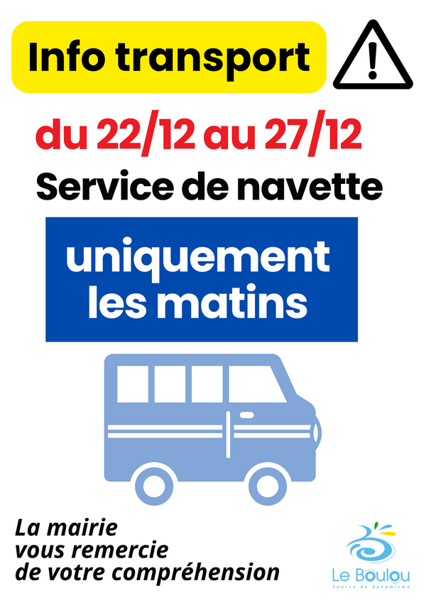 Service de navette uniquement le matin du 22 au 27 décembre
