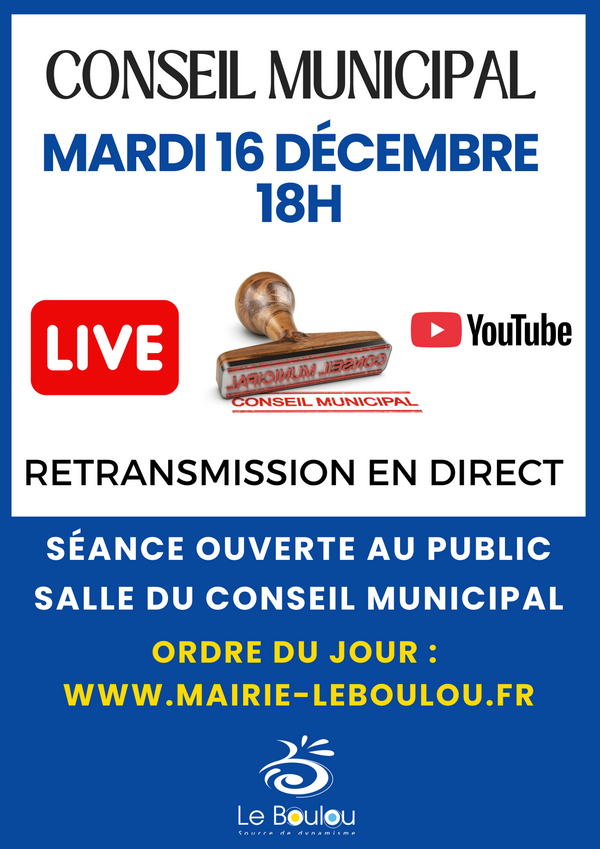Le prochain conseil municipal aura lieu mardi 16 décembre à 18h salle du conseil municipal.