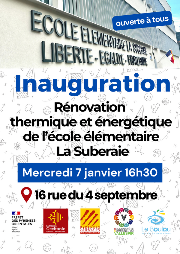 La ville du Boulou invite la population à l'inauguration publique de la rénovation thermique et énergétique de l’école élémentaire La Suberaie.