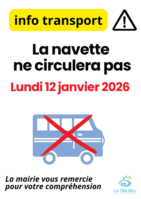 La navette urbaine ne circulera pas lundi 12 janvier 2026.