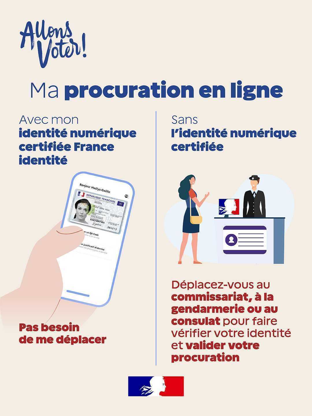 > Vous disposez d’une identité numérique certifiée France Identité : Aucune démarche en présentiel n’est nécessaire, la procuration peut être finalisée entièrement en ligne.